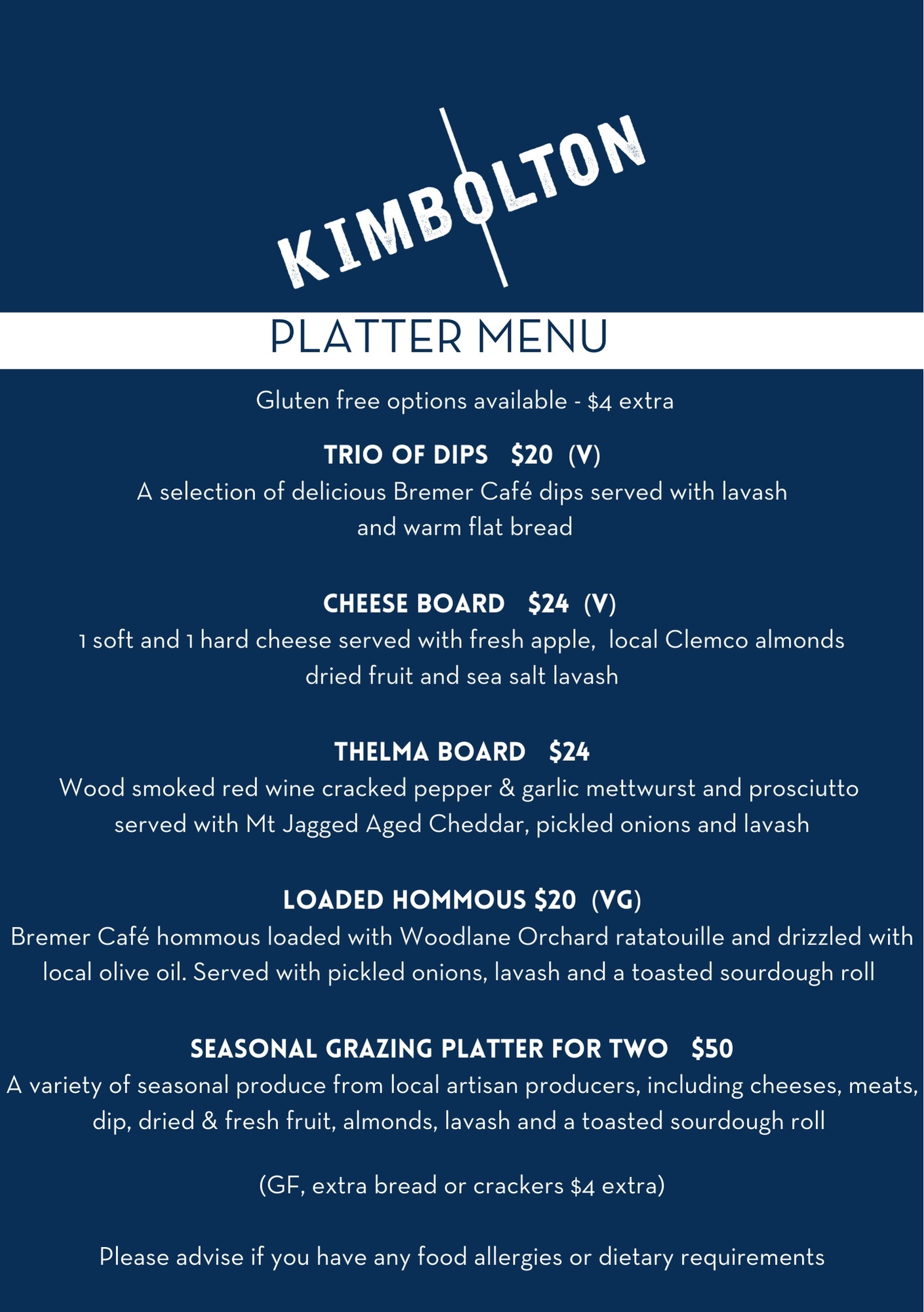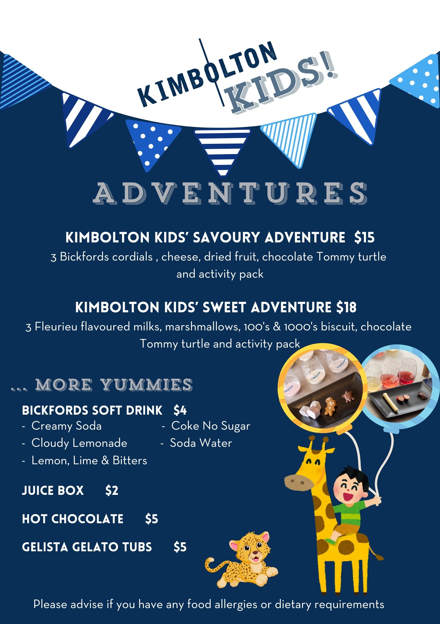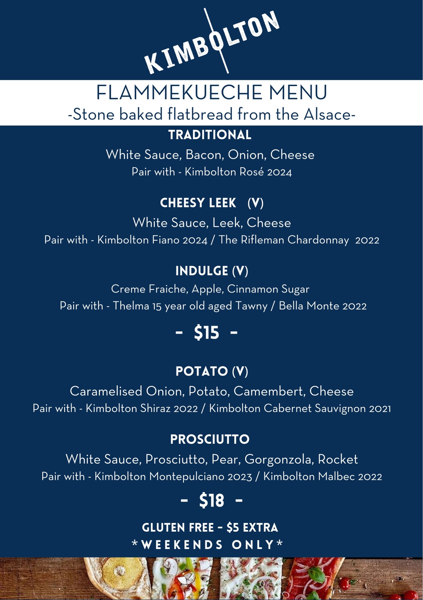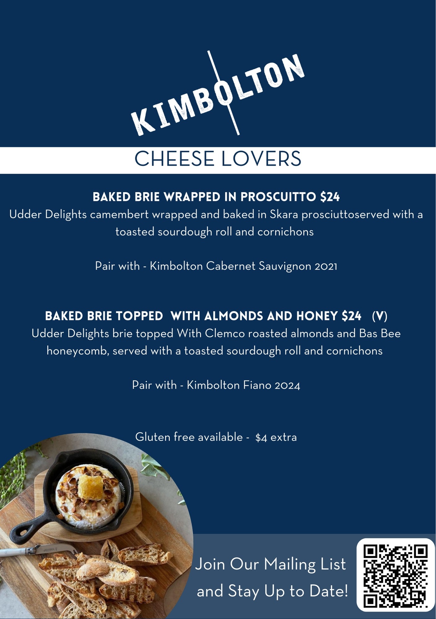 From our delightful Platter menu and indulgent Cheese Lovers selections to the savoury Flammekueche and our fun Kimbolton Kids menu, there's something for everyone.